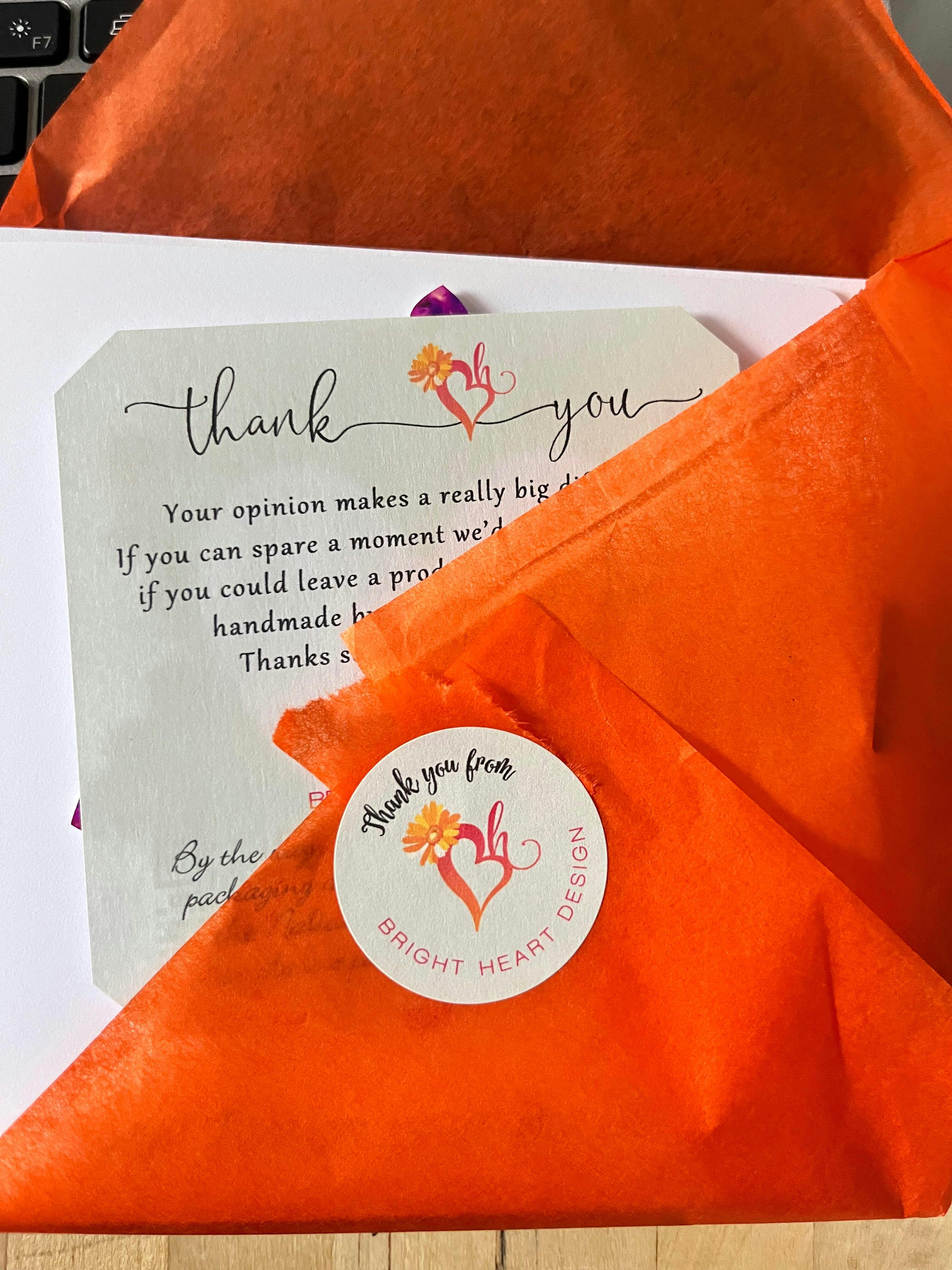 Received so quickly and carefully packaged in a cardboard backed envelope. The cards were beautifully wrapped in a handmade tissue envelope. Once opened delighted with the quality and detail in this carefully crafted by hand card. Highly recommend for all special occasions